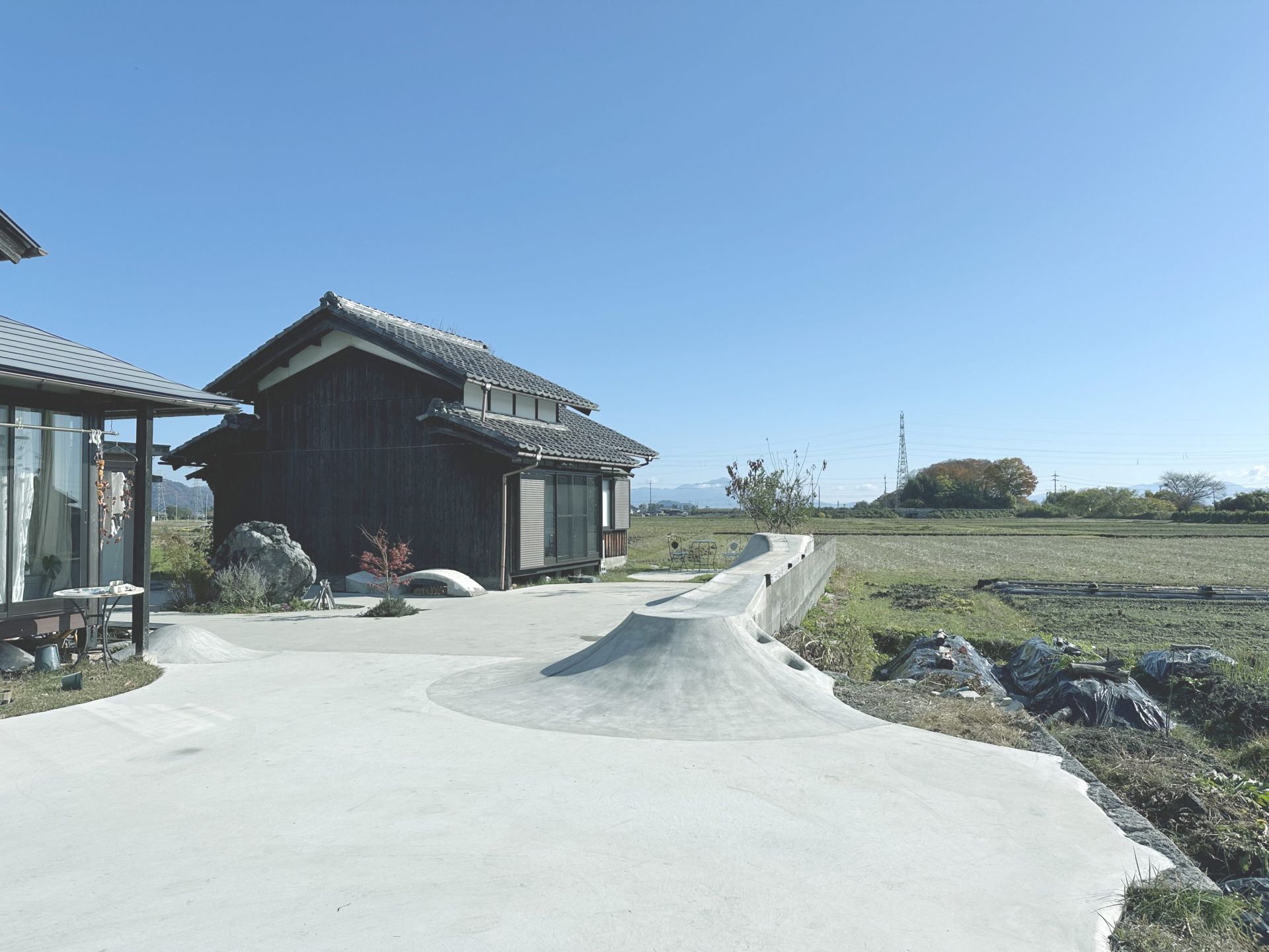 庭に小さなスケートパークをDIYで少しずつ製作中です。スケートボードはアメリカから来た文化ですが、ランドスケープとして、駐車場として。日本の生活と日本家屋、田園風景に溶け込む滑れるランドスケープを目指しています。